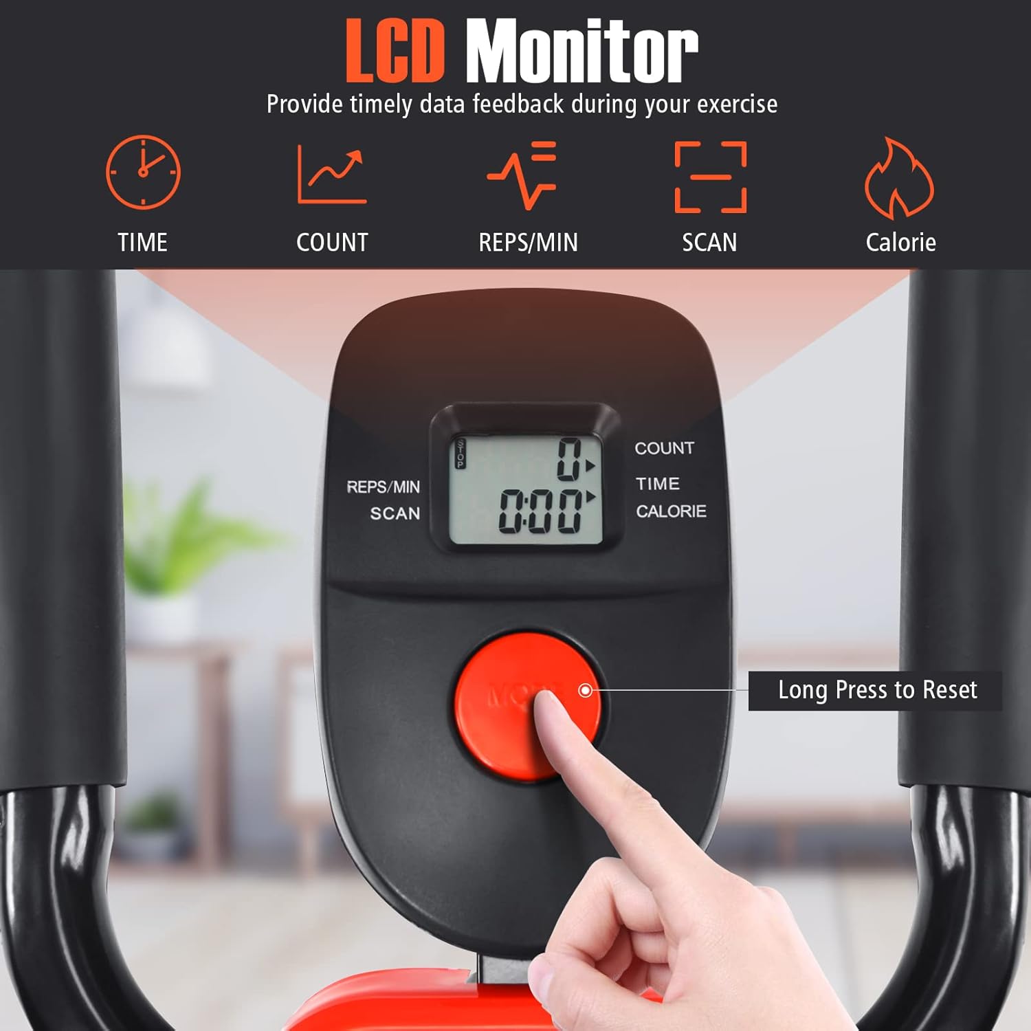 - [LCD Display Monitor] The informative LCD training computer tracks the calories burnt, time, and moves per minute during your exercise repetitions.