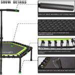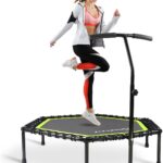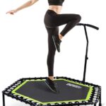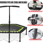 The trampoline is usually preferred for the exercise of the whole body or aerobics. There are three adjustable T-shaped handles, which can also be removed if needed. The height of these handles ranges from 42.5″ to 50.4″.