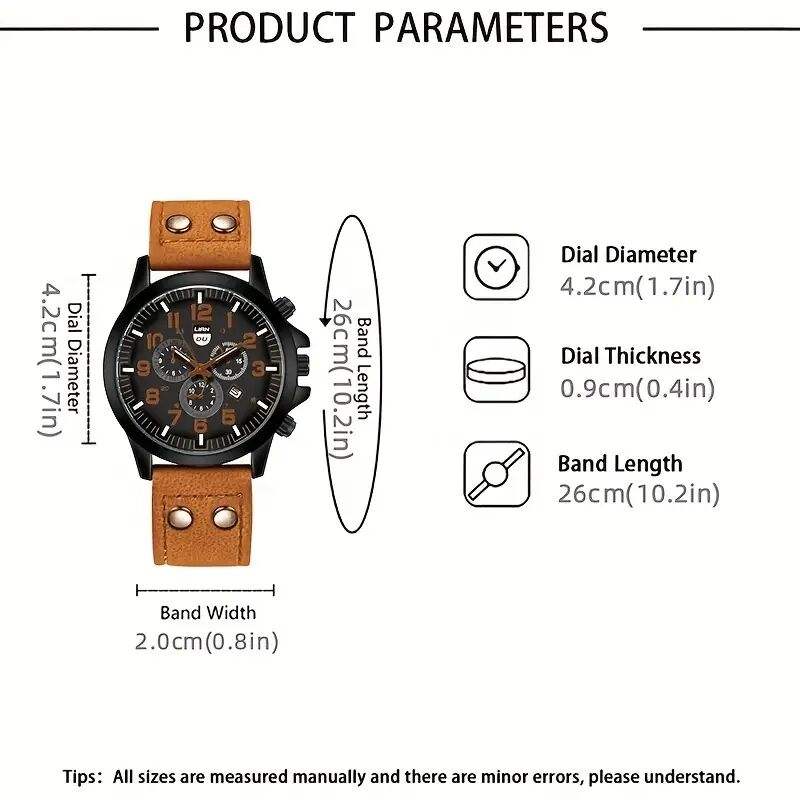 Mens Business Leather Watch Set Woven bracelet Hollowed Out Watch