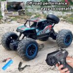 - Off-Road Capability: This RC car is specifically engineered for off-road adventures, capable of conquering various terrains such as rocky trails, grassy fields, and uneven surfaces. It’s the perfect companion for outdoor exploration and discovery.